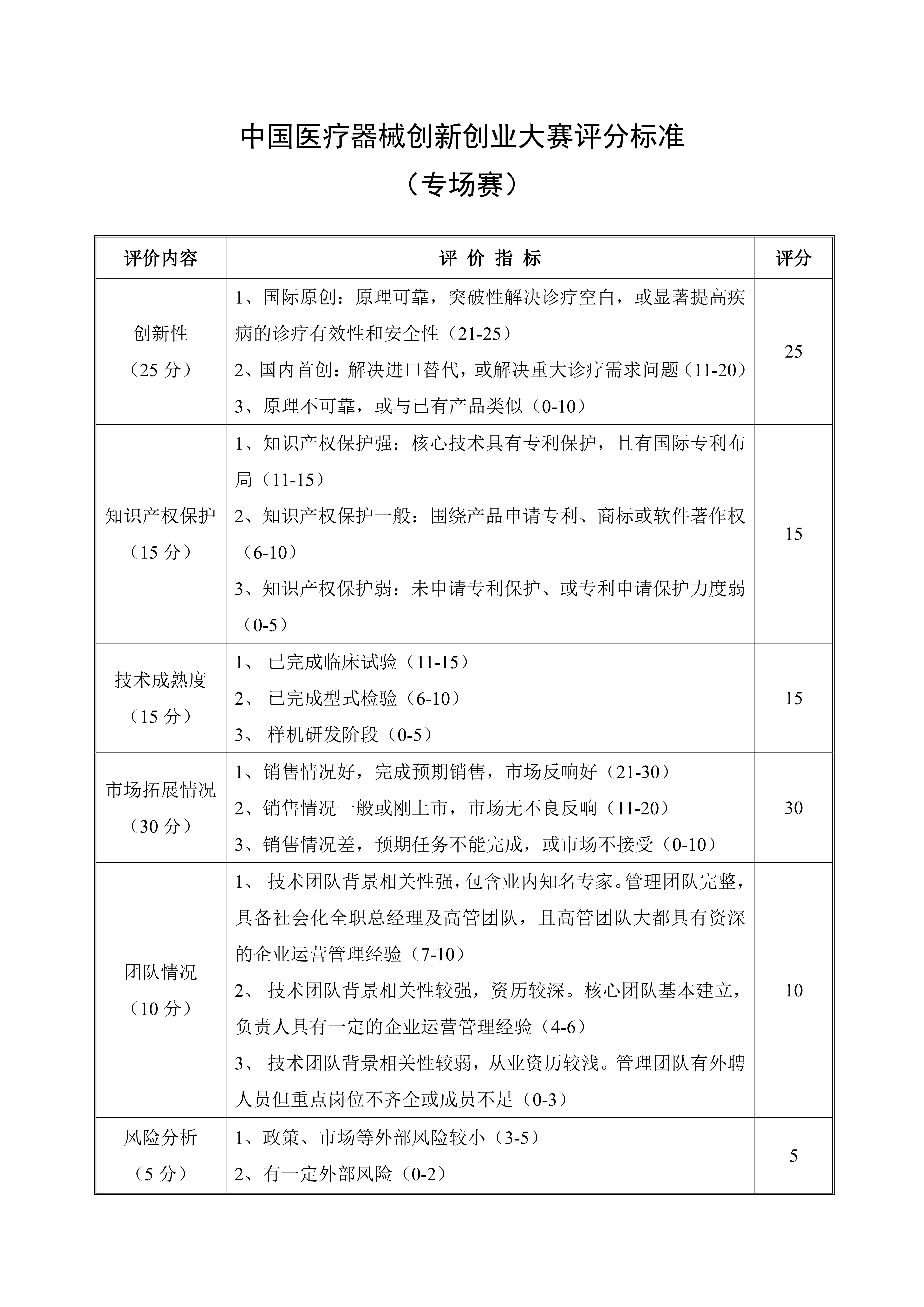 中国医疗器械创新网创业大赛评分标准(创意组)
