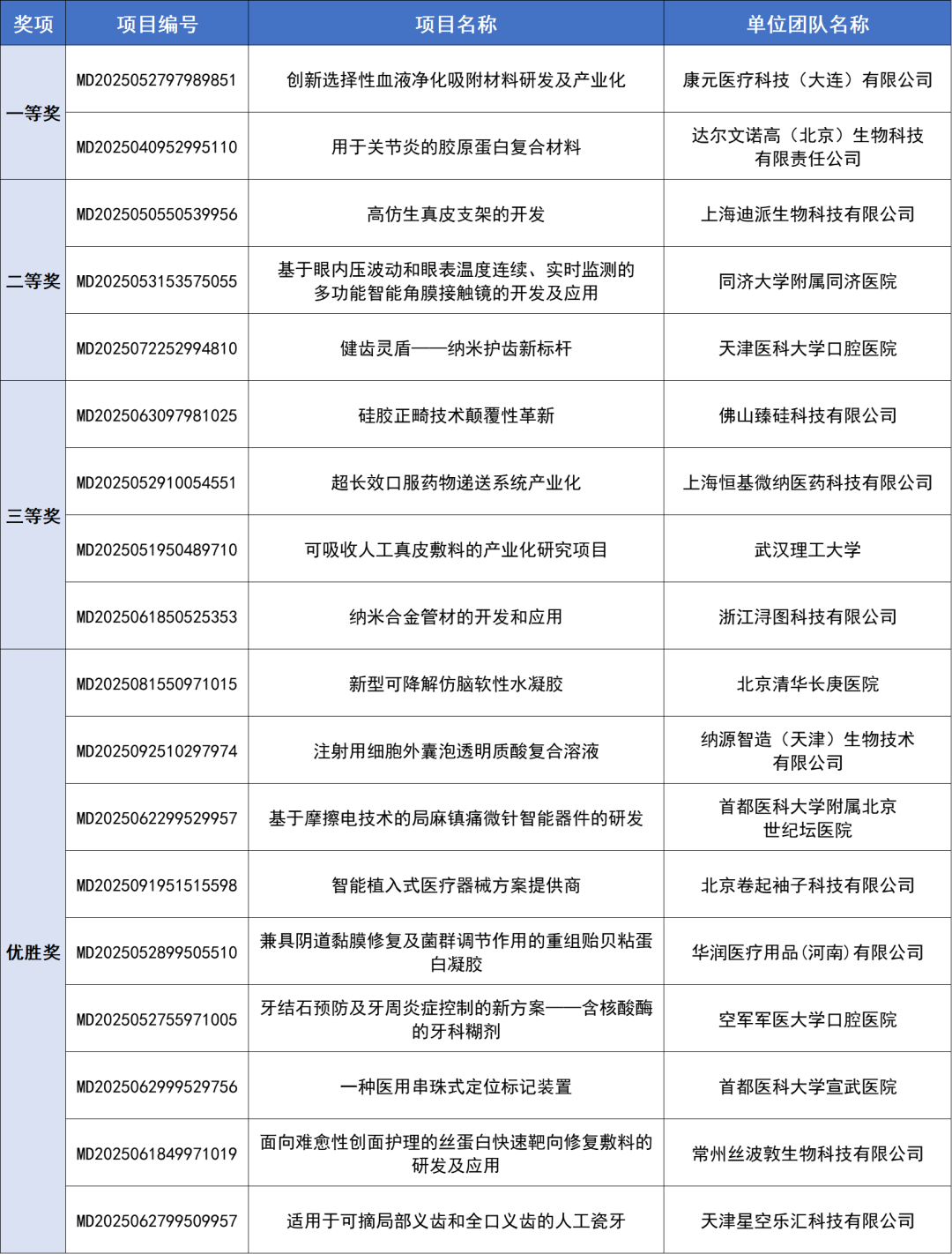 最终本场高值医用耗材类别赛评选出了一等奖2名、二等奖2名、三等奖4名、优胜奖10名。